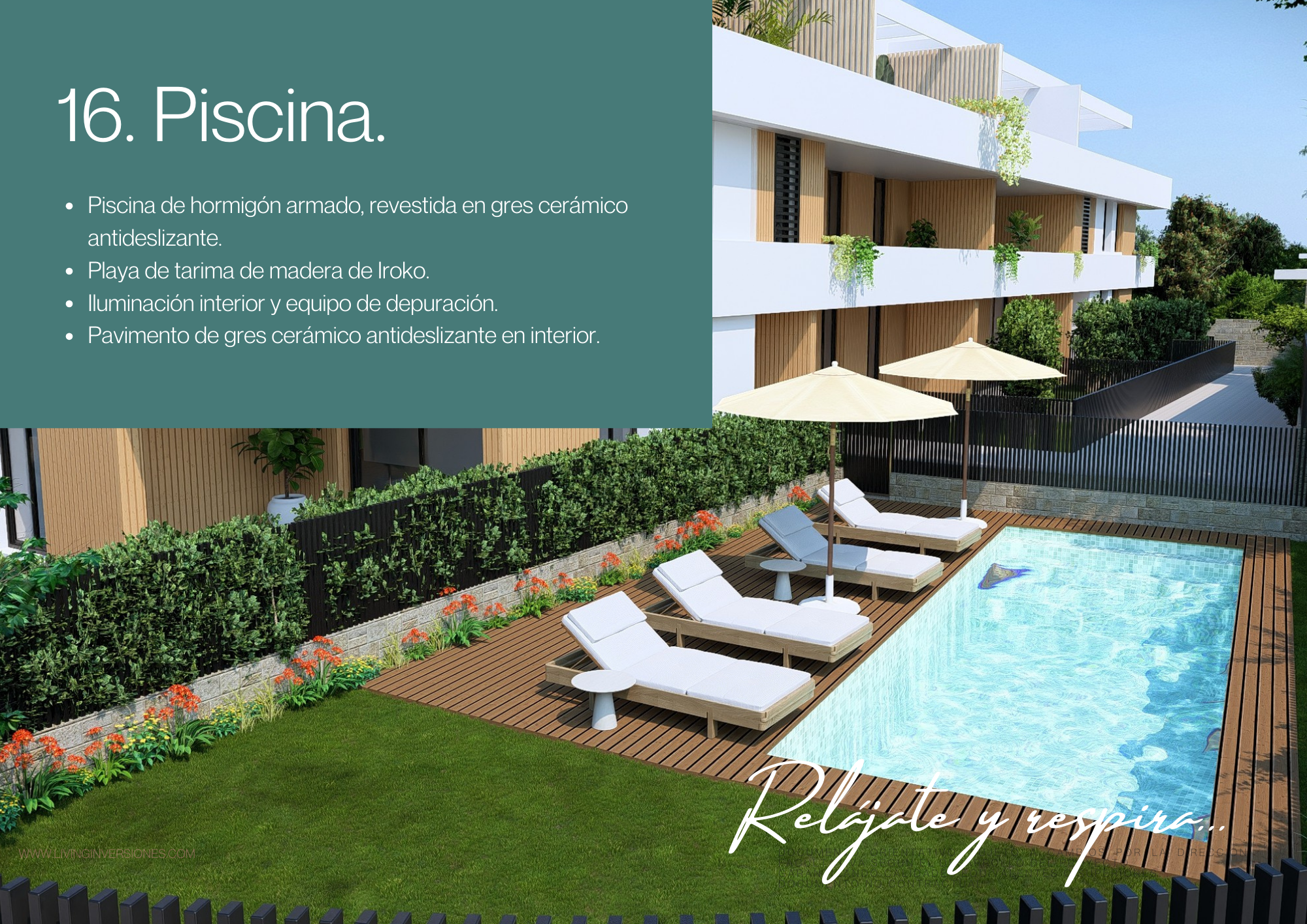 Piscina comunitaria de diseño mediterráneo, ideal para relajarse y compartir momentos únicos.